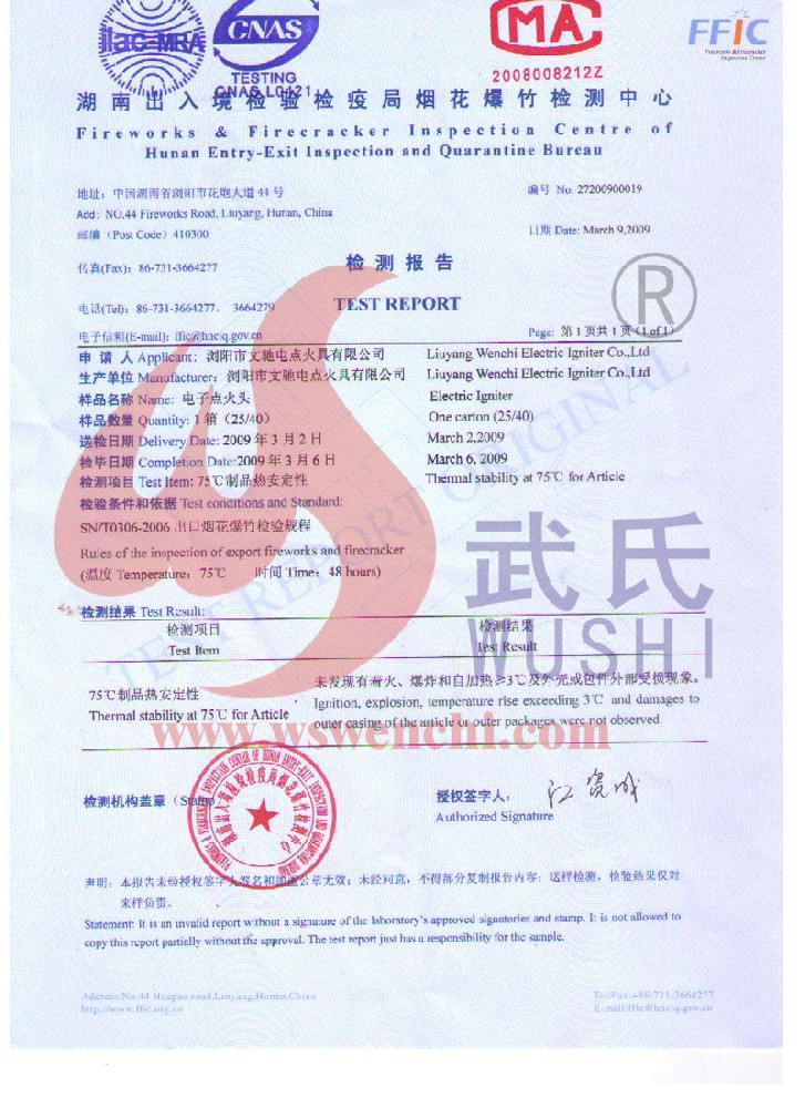 瀏陽(yáng)市文馳電點(diǎn)火具有限公司(原培文電子點(diǎn)火器材廠),創(chuàng)建于1998年,是一家專業(yè)從事研制銷售電子點(diǎn)火產(chǎn)品的民營(yíng)科技企業(yè),是我國(guó)第1枚煙花用電點(diǎn)火頭生產(chǎn)者,是《煙花爆竹電點(diǎn)火頭國(guó)標(biāo)》牽頭起草單位。公司位于中國(guó)“煙花之鄉(xiāng)”湖南省瀏陽(yáng)市,地理位置優(yōu)越,交通便利。 我公司研制的對(duì)象是用電能引燃火藥、做機(jī)械功等預(yù)定功能的一次性使用的元件或裝置,包括電點(diǎn)火頭(英文名ElectricMatch or Electric Igniter,中文俗稱“電火柴”或“電發(fā)火頭”)、電點(diǎn)火管和延期電點(diǎn)火管;我們估且在以后的產(chǎn)品技術(shù)欄中將我們研究的產(chǎn)品統(tǒng)稱為電點(diǎn)火具,將電點(diǎn)火器看成是用于提供和控制供給電點(diǎn)火元件點(diǎn)火的電能器材;我們研究的電點(diǎn)火橋路有橋絲式、無橋絲···